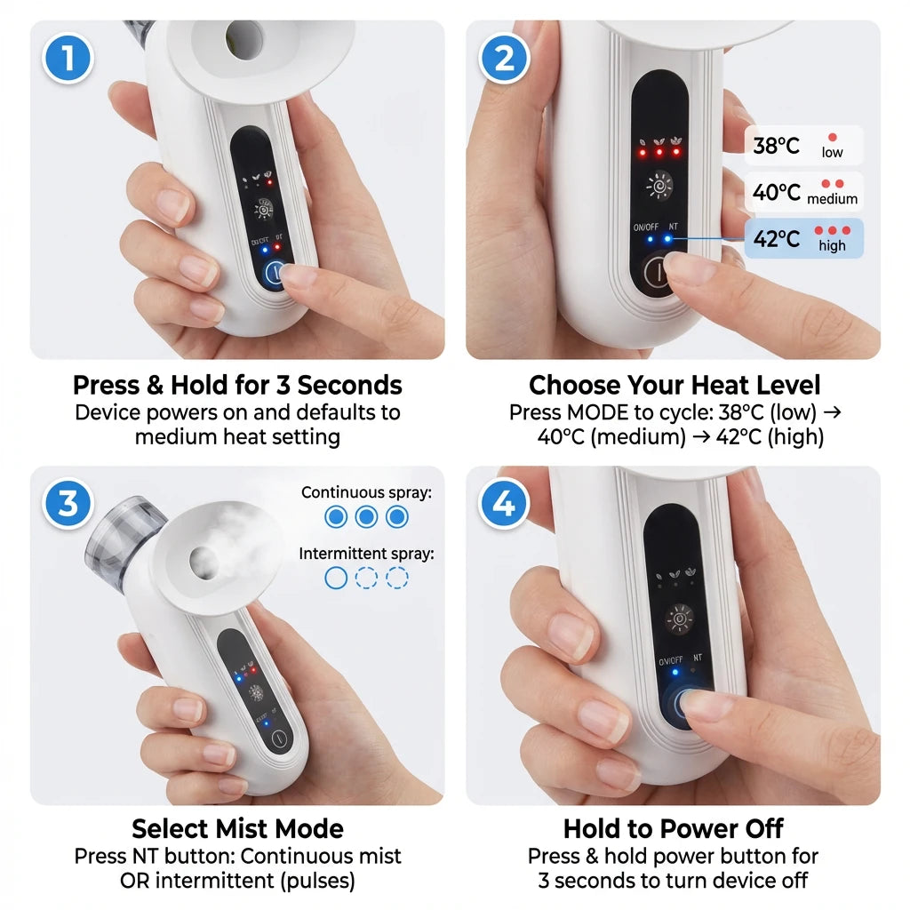 Yes, completely safe. TheraEyes™ has four gentle temperature settings: Cool mist for inflammation, 38°C (100°F) for light relief, 40°C (104°F) for standard therapy, and 42°C (108°F) for stubborn blockages—the same therapeutic range used in professional $600 LipiFlow treatments.