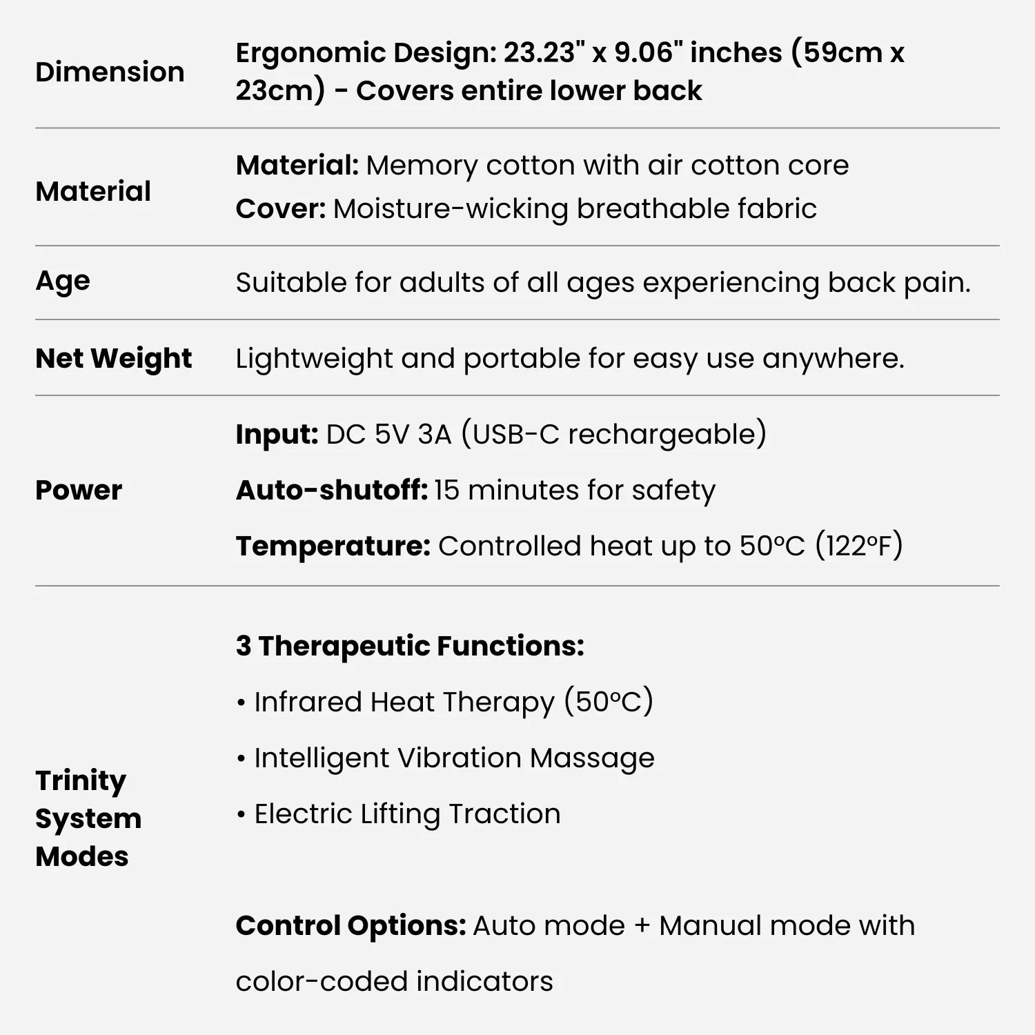 1 - Infrared Heat Therapy (50°C): The device utilizes controlled infrared heat at 50°C, which has demonstrated efficacy in improving blood circulation and relieving chronic muscle tension.
